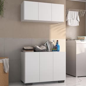 Transforme sua lavanderia num ambiente funcional e elegante com o Conjunto Lavanderia Multiuso Armário Aéreo e Balcão 3 Portas Multimóveis MP5051. Fabricado em MDP (15mm) com acabamento acetinado (cerca de 20% de brilho), garante durabilidade e resistência. Composto por um balcão e um armário aéreo com 3 portas e prateleiras, este kit oferece amplo espaço interno para organizar produtos de limpeza e outros itens de lavanderia. O balcão ainda permite apoiar suas roupas, deixando o ambiente organizado, e possui pés quadrados em polipropileno que oferecem estabilidade e estilo único. O design clean confere um visual moderno e estiloso ao kit. Conteúdo da Embalagem: 1 (um) Balcão 1 (um) Armário Aéreo Manual de Montagem Kit Ferragem