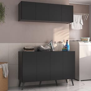Transforme sua lavanderia num ambiente funcional e elegante com o Conjunto Lavanderia Retrô Multiuso Armário Aéreo e Balcão 4 Portas Multimóveis MP5053. Fabricado em MDP (15mm) com acabamento acetinado (cerca de 20% de brilho), garante durabilidade e resistência. Composto por um balcão e um armário aéreo com 4 portas e prateleiras, este kit oferece amplo espaço interno para organizar produtos de limpeza e outros itens de lavanderia. O balcão ainda permite apoiar suas roupas, deixando o ambiente organizado, e possui pés retrô em polipropileno que oferecem estabilidade e um charme vintage. O design clean confere um visual moderno e estiloso ao kit.