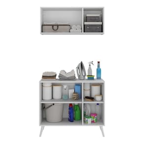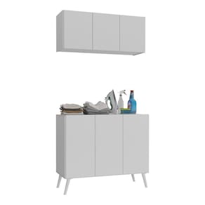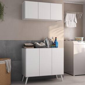 Conjunto Lavanderia Retrô Multiuso Armário Aéreo E Balcão Mp5050 Branco Branco