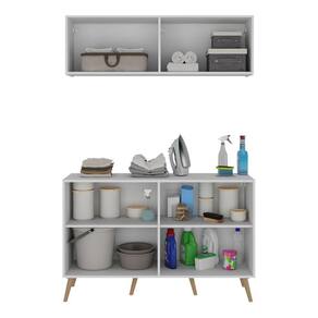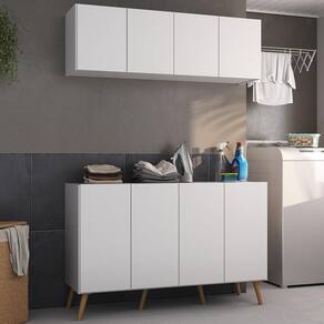 Transforme sua lavanderia num ambiente funcional e elegante com o Conjunto Lavanderia Retrô Multiuso Armário Aéreo e Balcão 4 Portas Multimóveis MP5053. Fabricado em MDP (15mm) com acabamento acetinado (cerca de 20% de brilho), garante durabilidade e resistência. Composto por um balcão e um armário aéreo com 4 portas e prateleiras, este kit oferece amplo espaço interno para organizar produtos de limpeza e outros itens de lavanderia. O balcão ainda permite apoiar suas roupas, deixando o ambiente organizado, e possui pés retrô em polipropileno que oferecem estabilidade e um charme vintage. O design clean confere um visual moderno e estiloso ao kit.