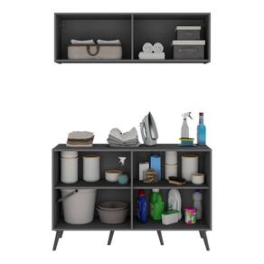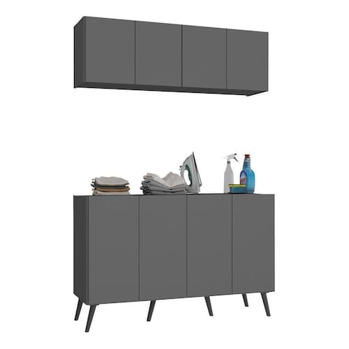 Conjunto Lavanderia Retrô Multiuso Armário Aéreo E Balcão Mp5053 Grafite preto