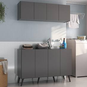 Transforme sua lavanderia num ambiente funcional e elegante com o Conjunto Lavanderia Retrô Multiuso Armário Aéreo e Balcão 4 Portas Multimóveis MP5053. Fabricado em MDP (15mm) com acabamento acetinado (cerca de 20% de brilho), garante durabilidade e resistência. Composto por um balcão e um armário aéreo com 4 portas e prateleiras, este kit oferece amplo espaço interno para organizar produtos de limpeza e outros itens de lavanderia. O balcão ainda permite apoiar suas roupas, deixando o ambiente organizado, e possui pés retrô em polipropileno que oferecem estabilidade e um charme vintage. O design clean confere um visual moderno e estiloso ao kit.
