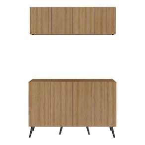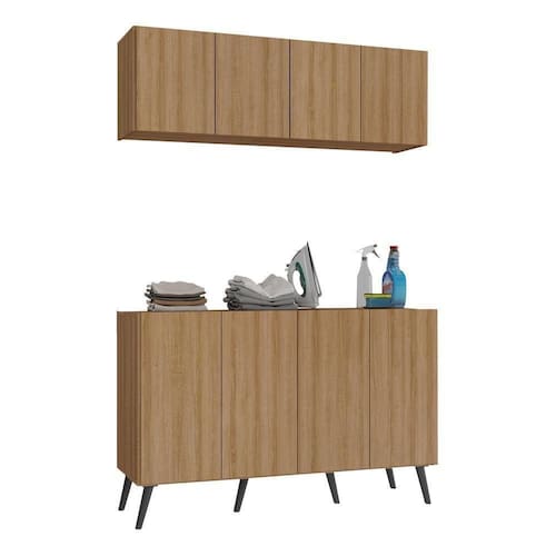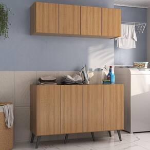 Transforme sua lavanderia num ambiente funcional e elegante com o Conjunto Lavanderia Retrô Multiuso Armário Aéreo e Balcão 4 Portas Multimóveis MP5053. Fabricado em MDP (15mm) com acabamento acetinado (cerca de 20% de brilho), garante durabilidade e resistência. Composto por um balcão e um armário aéreo com 4 portas e prateleiras, este kit oferece amplo espaço interno para organizar produtos de limpeza e outros itens de lavanderia. O balcão ainda permite apoiar suas roupas, deixando o ambiente organizado, e possui pés retrô em polipropileno que oferecem estabilidade e um charme vintage. O design clean confere um visual moderno e estiloso ao kit.
