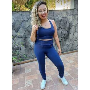 Conjunto Legging Canelado 3D E Top Nadador Bojo Fitness Luxo - Azul Marinho - 42-44