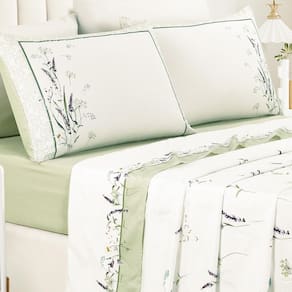 Contém na embalagem: 01 Lençol de Cima 2,50m x 2,40m 01 Lençol de Baixo com Elástico para Colchão de 1,98m x 1,58m x 40cm 02 Fronhas 70cm x 50cm