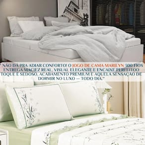 A gente sabe como é difícil encontrar um conjunto que seja bonito, confortável e que ainda tenha qualidade de verdade. O Marilyn é feito com tecido 300 fios de altíssima qualidade, com toque acetinado que lembra os lençóis de hotel.