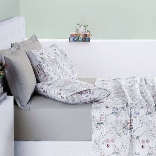 Conjunto De Lencol Casal Queen Size Selin Algodao Estampada COTTON Cor: CINZA