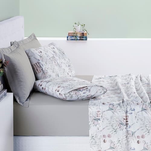 Quantas peças vêm no conjunto São 4 peças: 1 lençol com elástico, 1 lençol plano e 2 fronhas estampadas.