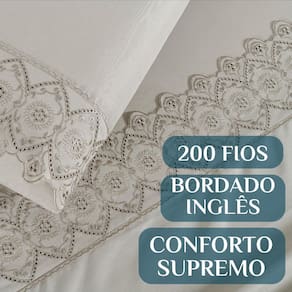 Descubra o verdadeiro significado de conforto e elegância com o Conjunto de Lençol Casal Super King London Seu bordado inglês delicado e tecido de 200 fios proporcionam uma experiência de sono luxuosa como nunca antes.
