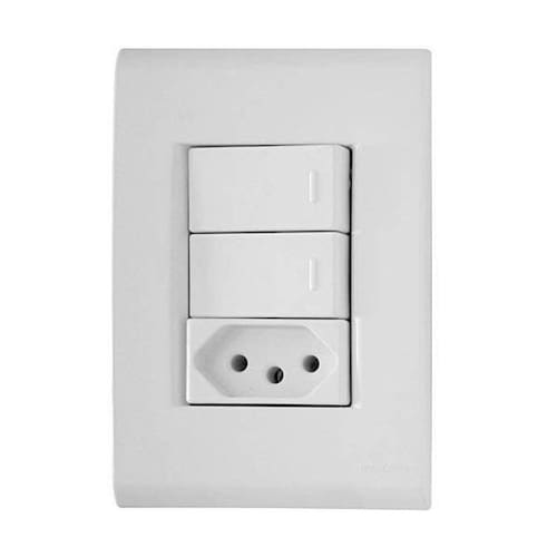 Conjunto Liz 4X2 2 Int Simples e 1 Tomada 10A Tramontina - Produto com design inovador, ideal para suas instalações elétricas - possui suporte com regulagem, permitindo perfeito ajuste do conjunto à parede. - fabricados em termoplástico de engenharia com alto brilho e módulos com componentes em metal, que não retém poeira, unindo qualidade e praticidade. - material: Placa e suporte- plástico ABS alto brilho; Módulos em nylon e componentes em metal. - voltagem: 250v - Conteúdo: 1- placa 4x2, 2- interruptores simples e 1- tomada 10a Ean: 7891435044577