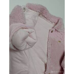- Casaco duplo, macio, quente e confortável. Na parte externa todo em pelo, muito fofinho ao sentir em mãos. Detalhe matelado e plaquinha da marca na frente, que deixam a peça ainda mais encantadora. Possui punhos e barra ribanados. Abertura na frente com botões de pressão. Sua pequena ainda mais charmosa e confortável! - Calça em jeans, super confortável. Detalhe de plaquinha da marca aplicada na frente. Cós traseiro de elástico, que se ajusta melhor ao corpo da bebê. Simplesmente um encanto!