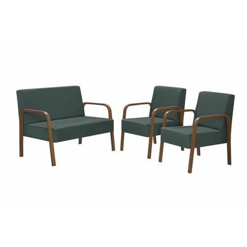 Conjunto Luna 1 Poltrona 2 Lugares e 2 poltronas de 1 lugar Braço Madeira D Salla Suede - Verde