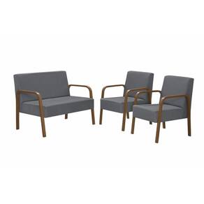 Conjunto Luna 2 Poltronas de 1 Lugar e 1 poltrona de 2 lugares Braço Madeira DSalla Suede - Grafite