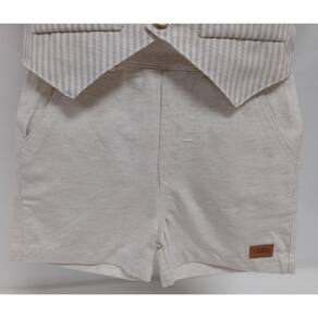 Características do produto: - Camisa manga curta social em tecido liso, super macia, leve e confortável qualidade Lessakids. Gola estilo polo. Abertura por botões na frente. Um luxo! - Bermuda em tecido estilo linho, super macia, leve e confortável. Detalhe de plaquinha da marca aplicada na frente. Dois bolsos frontais. Cós traseiro de elástico. - Colete em tecido super leve, macio. Detalhe de estampa listrada, recorte frontal. Abertura por botões de madeira. - Acompanha ainda gravatinha borboleta com elástico, pode ser removida e usada com outras peças. Conjunto maravilhoso!
