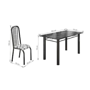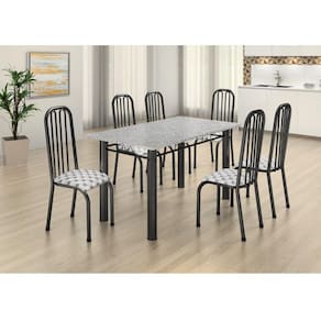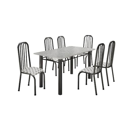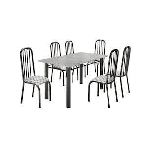Este conjunto de mesa com 06 cadeiras e tampo retangular, é o charme que faltava na sua cozinha. Produto com alta tecnologia, qualidade e durabilidade, permitindo beleza e inovação no seu lar.