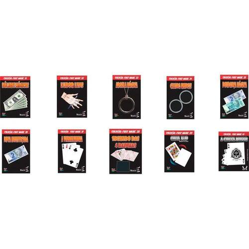 Kit de 10 mágicas O kit de mágica é da famosa marca MAGIC UP. Um kit de magica diferente que se destaca pela qualidade do material e das magicas reveladas. Vídeo aula feita por magico profissional. Kit aprovado e recomendado pela ABAM (Associação Brasileira dos Artistas Mágicos) O que você aguarda para conhecer agora 10 fantásticos segredos profissionais? 31-Dólares Mágicos - Coleção Fast Magic N 31 O mágico apresenta ao público 5 folhas de papel em branco que magicamente se transforma em 5 notas de dólares mágico. Um efeito muito visual. 32-Lubor Lens - Coleção Fast Magic N 32 Popularizado por Paul Harris e inventado por Lubor Fiedler, o Lens Lubor é uma ilusão óptica fantástica. O mágico coloca uma caneta na palma da mão do espectador e coloca um cartão transparente por cima, mostrando que tudo pode ser visto, inclusive a caneta. Ele vira um pouco o cartão e o centro da caneta desaparece, ficando somente as extremidades visíveis. Volta o cartão para a posição inicial e a caneta volta a ser vista por completo. No final, o mágico cria uma forte ilusão de que a caneta dobrou. Quando ele retira o cartão, mostra que a caneta ficou realmente dobrada. 33-Argola Mágica - Coleção Fast Magic N 33 Você amante da mágica vai adorar esse efeito incrível!O Mágico mostra uma argola de metal e uma pequena corrente fechada. Passa a corrente pelo centro da argola e em um passe mágico a argola fica presa na corrente. Você pode até desafiar o espectador a fazer o mesmo, mas ele não será capaz. Pode se fazer rodeado de pessoas, sem preocupação com ângulos! 34-Cling Rings - Coleção Fast Magic N 34 O Mágico entrega dois anéis para exame, feito isso toma os anéis e os esfrega na manga dizendo que os esta magnetizando. Após isso junta os anéis e para espanto dos espectadores eles ficam presos um ao outro, não bastando isso o Mágico gira o anel de baixo ficando este girando sob o outro anel. Enfim o Mágico separa os anéis e os entrega aos espectadores para que tentem o mesmo, só que eles não vão conseguir. 35-Poupança Mágica- Coleção Fast Magic N 35 O mágico apresenta um pedaço de papel totalmente em branco dos dois lados. Ele começa a dobrar esse papel até que, incrivelmente ele se transforma em uma cédula de R$2,00. O mágico mostra os dois lados. Um número muito limpo. Mas ainda não acabou! Ele dobra a cédula de R$2,00 e ela se transforma em uma nota de R$100,00 e mostra novamente os dois lados da cédula. Sistema muito bem elaborado e trabalhado. 36-Nota Enfeitiçada - Coleção Fast Magic N36 Uma cédula de R$ 2,00 é colocada dentro de sua mão. De repente a nota dobra-se sozinha, para logo em seguida dobrar-se de novo e ainda mais uma vez. No final esta é dada para exame. A nota enfeitiçada é um número que pode ser aprendido facilmente em alguns minutos. Uma vez o número dominado, você poderá divertir seus amigos durante anos. 37-A Vermelhinha - carta em PVC tipo Bicycle - Coleção Fast Magic N 37 Um clássico da Cartomagia agora nas suas mãos! A carta vermelha apesar de clara e lentamente virada não consegue ser achada pelo espectador, apenas pelo mágico. Excelente número de close-up (magica de proximidade) com apenas três cartas 38-Segredo das 4 Rainhas - Coleção Fast Magic N 38 O mágico exibe uma carteira de plástico preta, com 4 cartas dentro e diz que são 4 damas. Pede para o espectador escolher uma dama qualquer. As cartas são retiradas da carteira e ao abrir em leque, uma das cartas está virada ao contrário e é exatamente a carta escolhida livremente!!! Mas o efeito não termina aí, pois ao mostrar as costas da dama, ela é de cor diferente das outras damas, e para terminar com chave de ouro, o mágico mostra as outras três cartas, mas nenhuma delas é uma dama e sim cartas de face branca. Número impressionante, muito visual e limpo. Não pode faltar no seu repertório de Close-Up. 40-Qual é A Carta Maior - Coleção Fast Magic N40 O mágico mostra 5 cartas e com um passe de mágica, as cartas ficam com tamanhos diferentes. Excelente numero de close-up (magica de proximidade) com efeito surpresa garantido - Ideal para magica de bar boteco restaurante Itens Inclusos: -01 Manual Ilustrativo -10 Acessórios -01 Link vídeo explicativo para os 10 acessórios