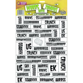 - As palavras incluem "arrgh", "uuuhh" e "cérebro"