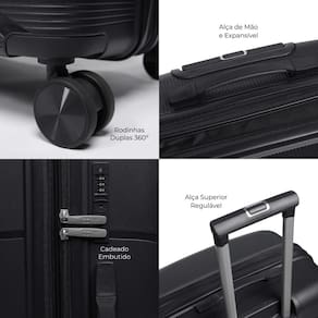 Fabricada em polipropileno, esta mala é resistente e durável, equipada com 4 rodas duplas 360 que proporcionam fácil manobrabilidade. Possui cadeado fixo com senha para segurança, carrinho para maior conforto e alças de mão e lateral (nas versões M/G). No interior, conta com cinta elástica e divisória em zíper para manter tudo organizado. Além disso, o tamanho P é aprovado pela Agência Nacional de Aviação Civil (ANAC) para ir à bordo, tornando-a a escolha perfeita para suas viagens.