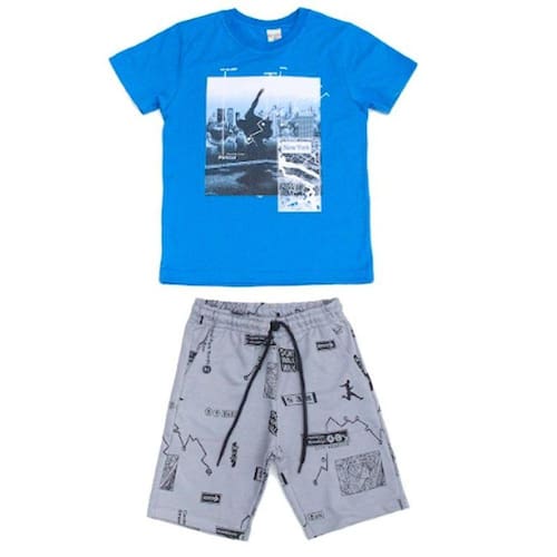 Conjunto manga curta New York e bermuda moletinho estampada com 3 bolsos Have Fun