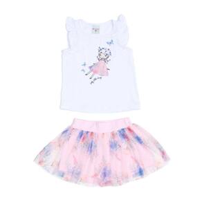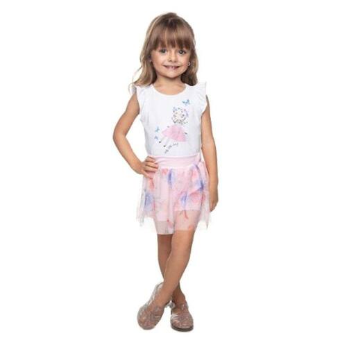 Conjunto manga curta com estampa menina no balanço, saia tule estampado Have Fun
