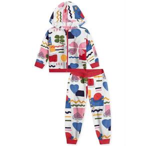Conjunto Lilica composto por jaqueta e calça em moletom stretch felpado. A jaqueta possui fechamento em zíper, capuz, estampa em toda a peça e punho nas mangas e cintura. A calça conta com elástico no cós, punho nas barras e estampa igual à jaqueta. Aposte! Sua pequena vai amar!