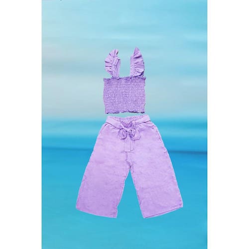 Conjunto menina blogueira cropped e calça pantacout - Lilás - 6