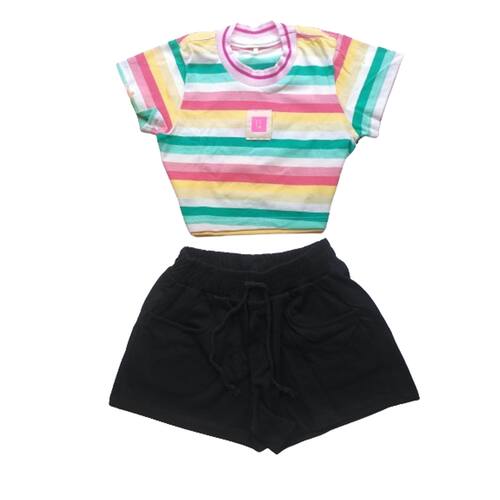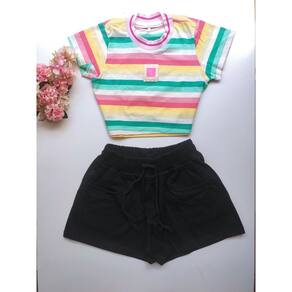 Conjunto menina blusa cropped e short moda blogueirinha - 4 anos