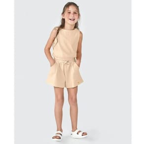 Conforto e estilo para os dias quentes! Esse conjunto traz duas peças supermodernas e cheias de charme. A regata cropped tem modelagem levemente solta ao corpo, com decote redondo de friso e elástico na barra, garantindo um ajuste confortável e descomplicado. Confeccionada em malha texturizada, a peça conta com estampa localizada, deixando o visual ainda mais divertido. O shorts tem modelagem levemente solta ao corpo, com cós de elástico e cadarço aplicado, oferecendo ajuste perfeito para brincadeiras e aventuras. Os bolsos faca adicionam praticidade, e a malha texturizada completa o look com muito conforto e estilo. Ideal para os dias de diversão com muita liberdade!