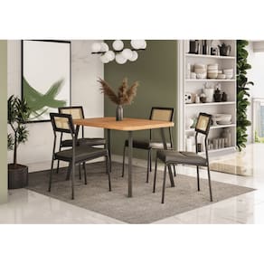 Conjunto Mesa Stellar com 4 Cadeiras Lux Grafite / Preto