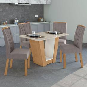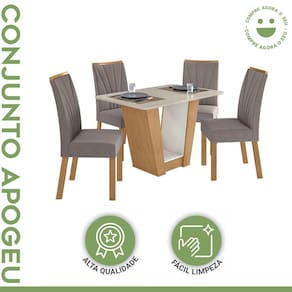 Conjunto Mesa 120cm Apogeu com Vidro e 4 Cadeiras Apogeu Amêndoa Clean/Off White/ Capuccino - Marrom
