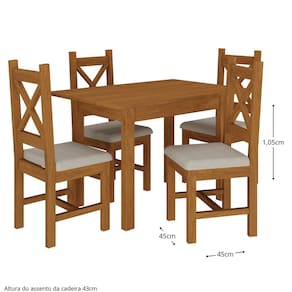 100% madeira maciça!!! Medida da Mesa (A x L x P): 80x120x80 Peso da Mesa: 18 kg Mesa suporta até: 150 kg Acabamento da Cadeira/Banco: Verniz Natural Acabamento da Mesa: Verniz Ambiente Principal: Sala de Jantar Cadeira/Banco estofada: Somente Assento Estofado Cadeira/Banco Estofada: Somente Assento Estofado Cadeira/Banco Suporta Até: 150.0000 Cadeira/Banco suporta até: 150 kg codigo_ean: 7900288288370 Complexidade da Montagem: Baixa: pode ser montado por uma pessoa sozinha Configuração do Conjunto: Mesa com Cadeiras Cor: Mogno Mel/Cinza Cor do Produto: Mogno Mel/Cinza Cor Secundária: Cinza De Canto (Canto Alemão): Não Escala de Brilho: Fosco Espessura do Tampo: 3 mm Estrutura do Encosto: Madeira Maciça Formato do Tampo: Retangular Itens Inclusos: 1 Mesa, 4 Cadeiras e Kit Ferragens Linha ou Coleção: Germany Manual de Montagem e Instalação: https://product-hub-prd.madeiramadeira.com.br/275093204/documents/60b22fd8-1245-4148-bf31-0ff5778986a63323189569917628899001834.pdf Marca: Moveis Nathalia Material da Base da Mesa: Eucalipto Material da Estrutura da Cadeira: Madeira Maciça Material do Tampo: Tauari Material Principal: Madeira Maciça Medida da Cadeira/Banco (A x L x P): 105x45x45 Medida do Tampo (L x C x E): 1,20x80x3 Mesa Dobrável: Não Mesa Extensível: Não Necessita Montagem: Sim Origem do Produto: Nacional Peso da Cadeira/Banco: 7,5 kg Possui Apoio Para os Pés: Não Possui Vidro: Não Quantidade de Cadeiras: 4 Quantidade de Lugares: 04 Recomendações de Uso, Manutenção e Limpeza: Utilizar pano levemente umidecido com lustra móveis Sistema de Montagem: Parafuso e cavilhas Marca: Não Informado