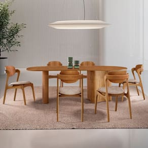 A mesa Celeste traz formas orgânicas e suaves que destacam a beleza natural da madeira, criando um ambiente acolhedor e sofisticado. Seu design atemporal une elegância e funcionalidade, sendo ideal para momentos especiais. Acompanhando esse conjunto, a cadeira Celeste Gold é produzida em madeira maciça, com assento estofado e encosto curvo, proporcionando mais conforto e apoio à coluna mesmo em longos períodos de uso. Juntas, mesa e cadeira oferecem o equilíbrio perfeito entre estilo e bem-estar, transformando sua sala de jantar em um espaço de convivência refinado e convidativo. Celeste é mais do que mobiliário — é um convite para viver com beleza e conforto no dia a dia. Medida da Mesa (A x L x P): 80 x 180 x 90 Peso da Mesa: 67,9 kg Mesa suporta até: 40 kg Acabamento da Cadeira/Banco: Verniz Natural Acabamento da Mesa: Verniz Almofada do assento: Fixa Altura do Conjunto: 80 cm Ambiente Principal: Sala de Jantar Cadeira/Banco Estofada: Somente Assento Estofado Cadeira/Banco estofada: Somente Assento Estofado Cadeira/Banco suporta até: 150 kg codigo_ean: 7900288189370 Complexidade da Montagem: Média: pode ser montado por mais de uma pessoa e/ou necessite de maior conhecimento para montagem Cor: Milano / Imbuia Natural Cor da Base: Natural Cor do Produto: Milano / Imbuia Natural Cor do Tampo: Marrom Cor Flex: Não Cor Secundária: Bege De Canto (Canto Alemão): Não Escala de Brilho: Semi-Brilho Espessura do Tampo: 40 mm Estrutura do Assento: Madeira Formato do Tampo: Oval Informações Complementares: As cadeiras são entregues totalmente montadas, prontas para uso. Itens Inclusos: 1 Mesa, 6 Cadeiras, Kit Ferragens e Manual de Montagem Largura do Conjunto: 180 cm Linha ou Coleção: Celeste Manual de Montagem e Instalação: https://product-hub-prd.madeiramadeira.com.br/158297931/documents/d0ef5de2-4308-4af6-bfc5-57f2e44ca36d30546795844175190216451.pdf Marca: Mobilare Material da Base da Mesa: MDF Laminado/Madeira Maciça Material da Estrutura da Cadeira: Madeira Material do Tampo: Laminado Material Principal: Madeira Medida da Cadeira/Banco (A x L x P): 88 x 47 x 60 Medida do Tampo (L x C x E): 180 x 90 x 4 Mesa Dobrável: Não Mesa Extensível: Não Montagem Flex: Não Necessita Montagem: Sim Origem do Produto: Nacional Peso da Cadeira/Banco: 8 kg Possui Apoio para Braços: Não Possui Apoio Para os Pés: Não Possui Prateleiras: Não Possui Suporte Giratório: Não Possui Vidro: Não Profundidade do Conjunto: 90 cm Quantidade de Cadeiras: 6 Quantidade de Lugares: 06 Recomendações de Uso, Manutenção e Limpeza: Limpar com pano seco. Sistema de Montagem: Parafusos Tipo de Assento: Fixo Tipo de Encosto: Fixo