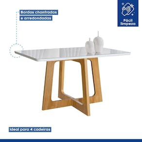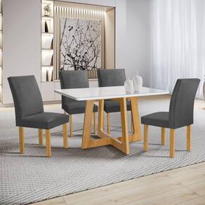Conjunto Mesa Arizona 120cm com 4 Cadeiras Canela Tampo Smart Plus com Vidro Cinamomo/Off White/Cinza