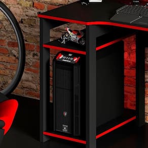 Produto: 01 Mesa 01 Armário | Cõmodo Indicado: Quartos | Tonalidade: Multicolorido Cor: Preto Vermelho