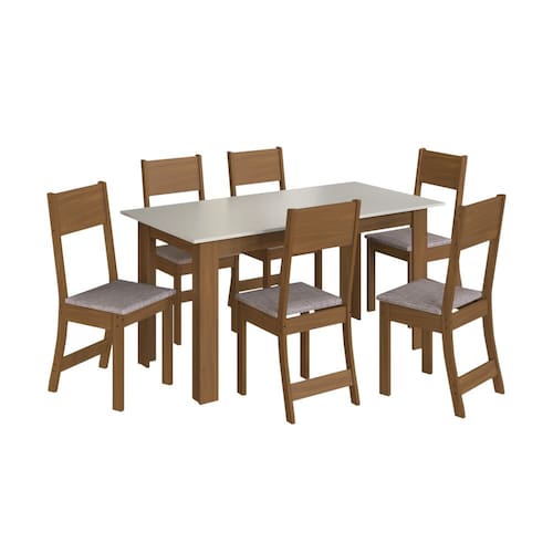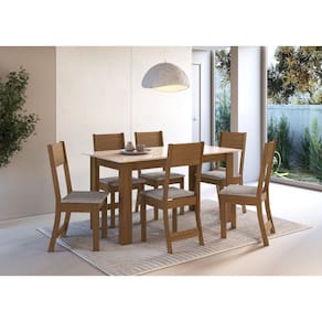 Conjunto Mesa Atlanta 6 Cadeiras Freijó Linho