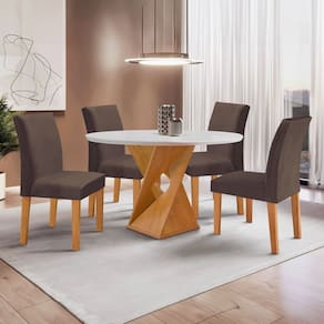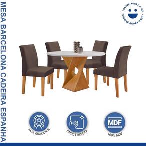 Conjunto Mesa Barcelona 100cmx100cm 4 Cadeiras Espanha Tampo Slim Plus Redondo Yescasa Cinamomo/Off White/Marrom