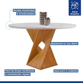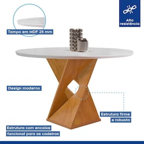 Este conjunto é ideal para quem busca unir estilo e praticidade em ambientes compactos. O tampo redondo de 100cm proporciona uma atmosfera aconchegante e moderna, perfeita para refeições em família ou com amigos. As cadeiras oferecem conforto e um toque de sofisticação, enquanto a estrutura robusta garante durabilidade. O design slim além de otimizar o espaço, permite fácil movimentação. Além disso, a superfície é fácil de limpar, mantendo uma mesa sempre impecável. Um excelente investimento para valorizar sua sala de jantar!