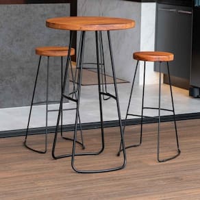Modernidade e praticidade, confira o Conjunto Mesa Bistrô Alta e 2 Banquetas Estilo Industrial Aura D09 Peroba, da Mpozenato que vai dar um toque de sofisticação na sua casa!