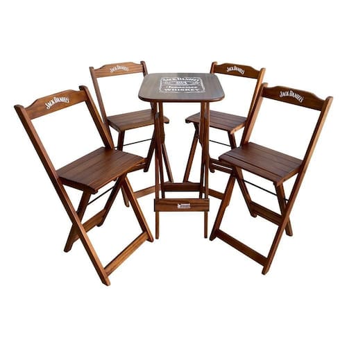 Conjunto Mesa Bistrô Com 4 Banquetas Dobráveis De Madeira Personalizada Jack - Imbuia