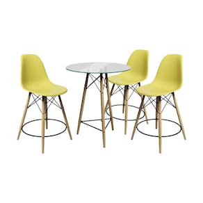 Conjunto mesa bistrô eames eiffel vidro com 3 banquetas amarelas de madeira O conjunto de mesa e banqueta eames eiffel bistrô possui um design moderno cheio de charme, fabricado com material de alta qualidade, proporcionando o melhor conforto e sem perder o estilo. A banqueta possui uma curvatura ergonômica que se encaixa perfeitamente ao corpo, ficando ainda mais completo com a mesa. Tipo: conjunto Modelo: bistrô Cor da mesa: vidro Cor da banqueta: amarelo Características Produto nacional Base: madeira maciça Tampo da mesa: vidro Assento: plástico polipropileno Banqueta suporta: até 120kg Garantia: 90 dias Dimensões da banqueta Altura: 115cm Altura até o assento: 70cm Largura: 45cm Comprimento: 45cm Dimensões da mesa Altura: 97cm Diâmetro: 60cm Imagens meramente ilustrativas, podendo haver uma pequena variação na cor dependendo de cada tela ou monitor. Objetos da imagem ambientada não acompanham o produto. Ean: 7897777799878