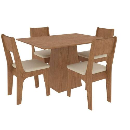 O conjunto MC01 é produzido em MDF 15mm e pintura UV. A cadeira do conjunto possui 4 pés e assento estofado com densidade 18 (D18). A altura do assento até o chão é de 47,5cm e a profundidade do assento é de 38cm. A mesa do conjunto possui tampo em MDF 15mm. Cadeira suporta até 120kgs cada e mesa 40kgs. Conteúdo da embalagem: móvel, ferragens e manual de montagem. A fixação das peças e/ou acessórios é feita por parafusos e cavilhas. Para uma limpeza mais efetiva, utilizar apenas uma flanela seca. Não utilizar produtos abrasivos. Garantia de 03 meses contra defeitos de fabricação. Medidas do produto (AxLxP) CADEIRA: 90x40x52,5cm. Medidas do produto (AxLxP) MESA: 78x120x90cm. Peso do conjunto: 52,80kgs. Marca: Emovell