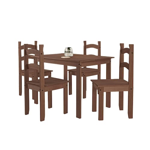 O Conjunto de Mesa e 4 cadeiras Neuza da Francine dará muito charme e elegância para a sua sala. Estrutura 100% Madeira Maciça de Eucalipto. Mesa com Tampo em 5 Ripas Alinhadas de 1,00m x 0,135m, com Suporte para até 50Kg – Cadeiras com Assento e Encosto em Madeira Maciça com Suporte para até 120Kg e Acabamento em Pintura UV Fosco.