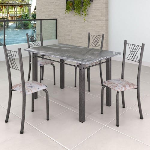 Quer deixar sua casa completa com um toque especial? Uma dica bacana de como transformar sua cozinha, deixando-a mais receptiva e bonita? Então você precisa de móveis indispensáveis para deixar seu lar muito mais aconchegante, receptivo e sempre disponível para receber a visita de amigos, familiares e convidados. Você vai se apaixonar por este incrível Conjunto de Mesa com 4 Cadeiras. Ideal para cozinha, ele é a melhor opção para completar o espaço. Aproveite!! Acabamento da Cadeira/Banco: Pintura Texturizada Acabamento da Mesa: Pintura Texturizada Almofada do assento: Fixa Ambiente Principal: Cozinha Cadeira/Banco estofada: Sim Cadeira/Banco suporta até: 120 kg Complexidade da Montagem: Baixa: pode ser montado por uma pessoa sozinha Cor: Botanic Bege / Mart Prata Cor do Produto: Botanic Bege / Mart Prata Enchimento do Assento: Espuma D-16 Escala de Brilho: Semi-Brilho Espessura do Tampo: 20 mm Estrutura do Assento: Assento em MDP de 15mm com couríssimo. Itens Inclusos: 1 Mesa, 4 Cadeiras, Kit Ferragens e Manual de Montagem Manual de Especificação Técnica: https://cdn2.madeiramadeira.com.br/atributo/soma-moveis-ltda/1308960-manual-de-montagem-cadeira-tubular-para-sala-de-jantar-v-01-yescasa.pdf Manual de Montagem e Instalação: https://cdn2.madeiramadeira.com.br/atributo/soma-moveis-ltda/1308959-manual-de-montagem-mesa-tubular-para-sala-de-jantar-v-01-yescasa.pdf Material da Base da Mesa: Aço Material da Estrutura da Cadeira: Aço Medida da Base (A x L x P): 74,3 x 108 x 63,5 Medida da Cadeira/Banco (A x L x P): 95 x 40 x 37 Medida da Mesa (A x L x P): 75 x 75 x 120 Medida do Tampo (L x C x E): 75 x 120 x 1,5 Mesa suporta até: 8 kg Necessita Montagem: Sim Origem do Produto: Nacional Peso da Cadeira/Banco: 2,94 kg Peso da Mesa: 55,8 kg Possui Apoio Para os Pés: Não Possui Suporte Giratório: Não Recomendações de Uso, Manutenção e Limpeza: Não permitir que molhe os pés da base, usar um pano de tecido macio e seco, evitar detergentes, alvejantes e produtos químicos de limpeza; no tampo usar tecido macio levemente umedecido. Revestimento da Cadeira/Banco: Couro Ecológico Sistema de Montagem: Parafusos