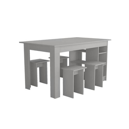 Conjunto Mesa com Nichos e 4 Bancos Nova Mobile Branco