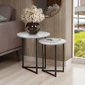 Conjunto Mesa De Apoio Canto Jade Sala Estar Pé De Aço Luxo