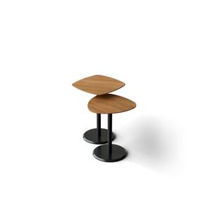 conjunto KEVA, composto por 02 mesas de canto, com tampos organicos , PÉS em madeira maçiça e base