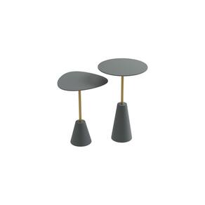Composto por 02 mesas, tampos redondo e organico, com borda invertida, base cone em laka , fabricada com usinagem de alta precisão, haste em METAL dourado maçiço.