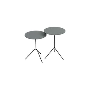 Composto por 02 mesas, tampos redondos, estrutura metalica em aço carbono