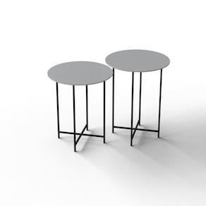 Composto por 02 mesas, tampos redondos, estrutura metalica em aço carbono
