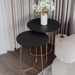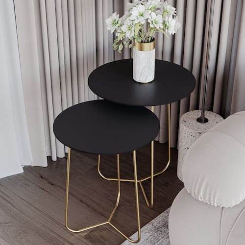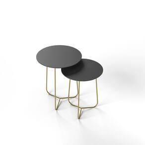 Conjunto Mesa de Canto Trude 55cm X 45cm X 45cm PRETO / DOURADO